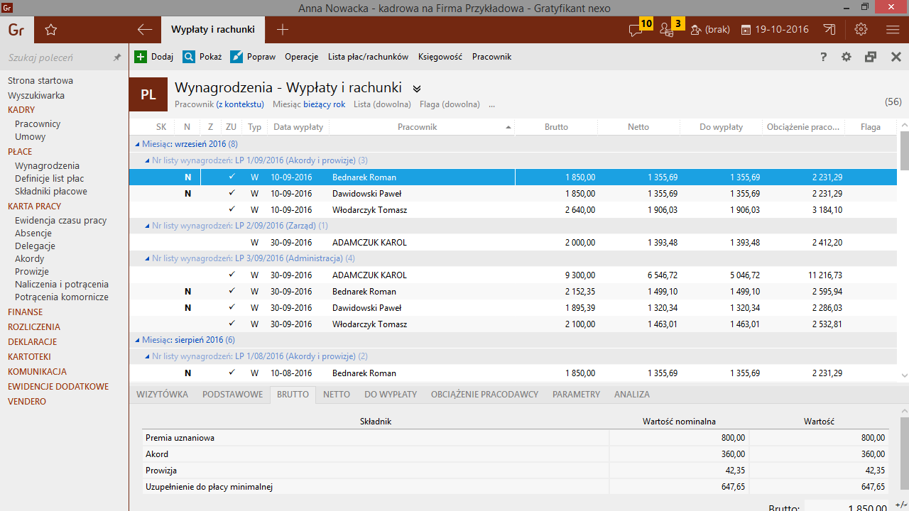 Gratyfikant nexo zawiera wszystkie funkcje niezbędne w dziale kadr i płac – od prowadzenia rozbudowanej ewidencji osobowej i wystawiania umów o pracę i umów cywilnoprawnych, przez proste i zaawansowane planowanie i naliczanie wynagrodzeń, po generowanie rozliczeń z urzędem skarbowym, ZUS i PPK oraz wystawianie różnych dokumentów kadrowo-płacowych.
