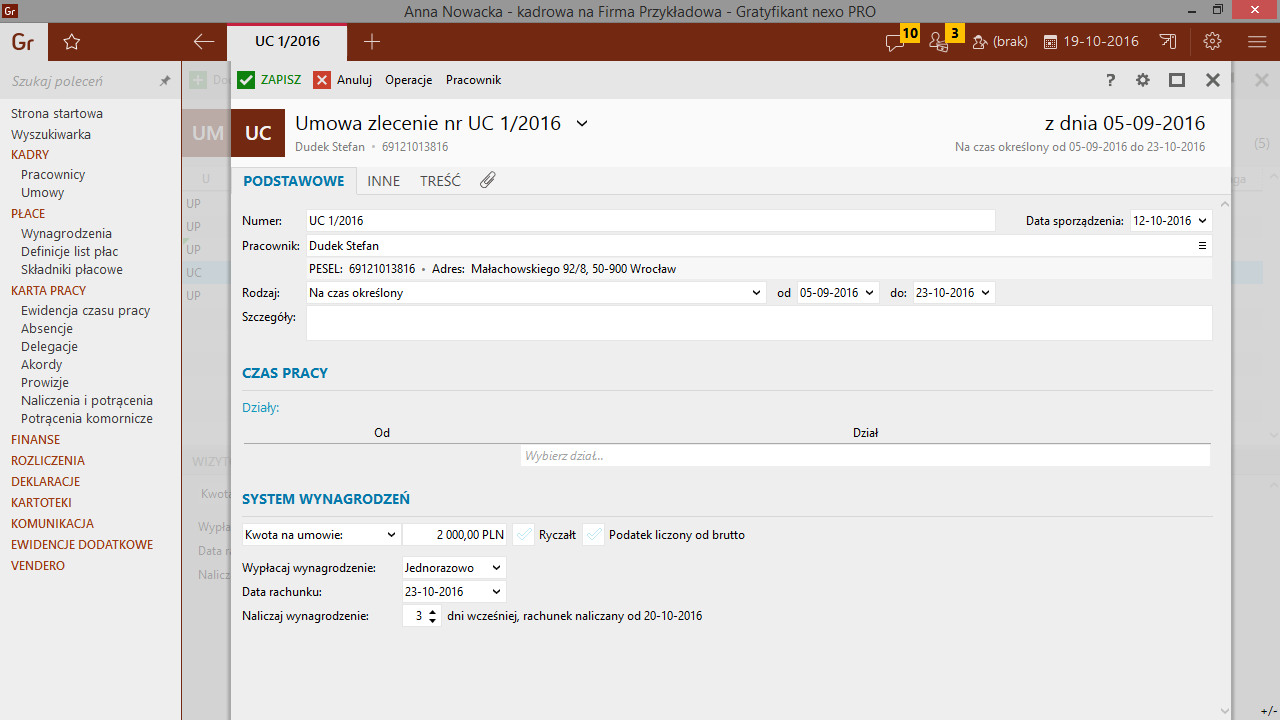 Gratyfikant nexo PRO zawiera wszystkie funkcje niezbędne w dziale kadr i płac – od prowadzenia rozbudowanej ewidencji osobowej i wystawiania umów o pracę i umów cywilnoprawnych, przez proste i zaawansowane planowanie i naliczanie wynagrodzeń, po generowanie rozliczeń z urzędem skarbowym, ZUS i PPK oraz wystawianie różnych dokumentów kadrowo-płacowych.