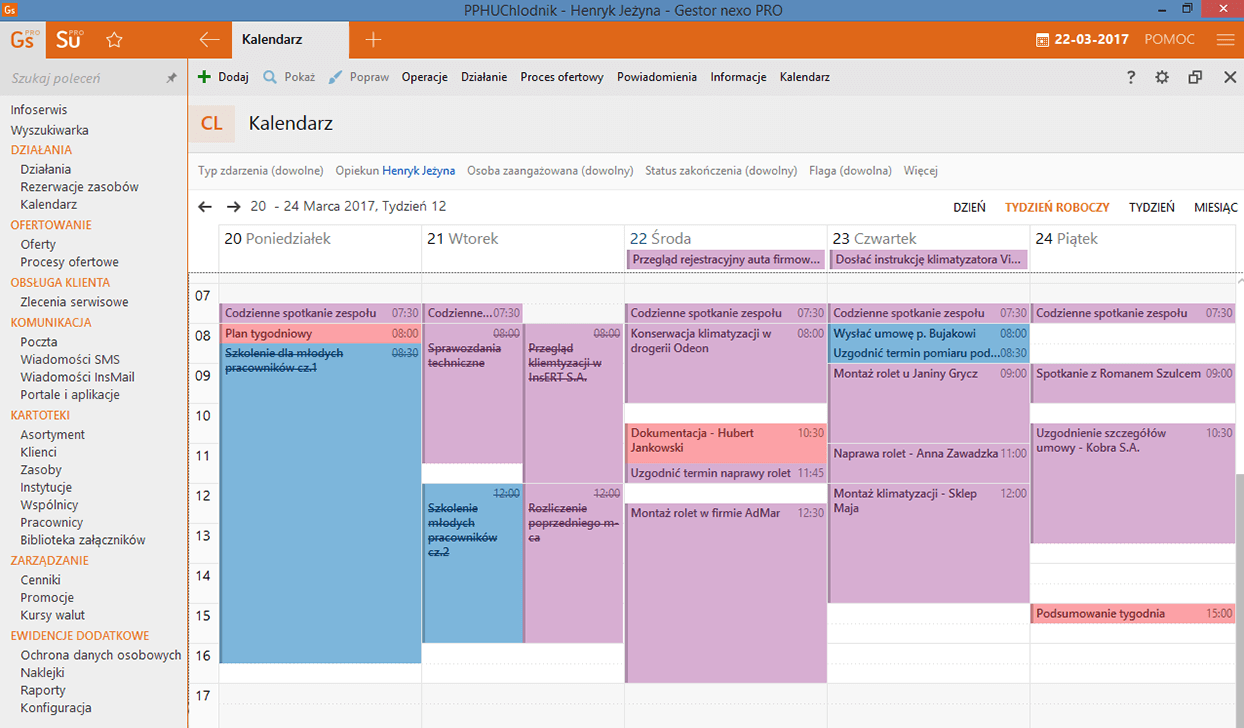 • wielowidokowy kalendarz z zaplanowanymi czynnościami