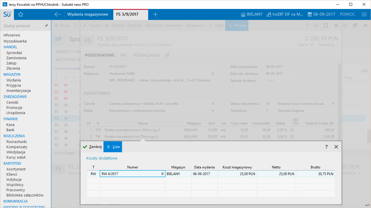 - pełny rozdział dokumentów magazynowych i handlowych, pojedyncze lub zbiorcze generowanie faktur do dokumentów WZ korekty dokumentów magazynowych automatyczne generowanie dokumentu WZ do faktury faktura pro forma faktura sprzedaży z wielu magazynów