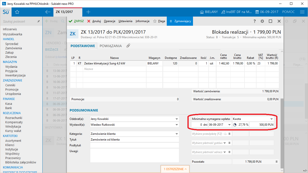 - minimalna wymagana kwota do zrealizowania zamówienia od klienta