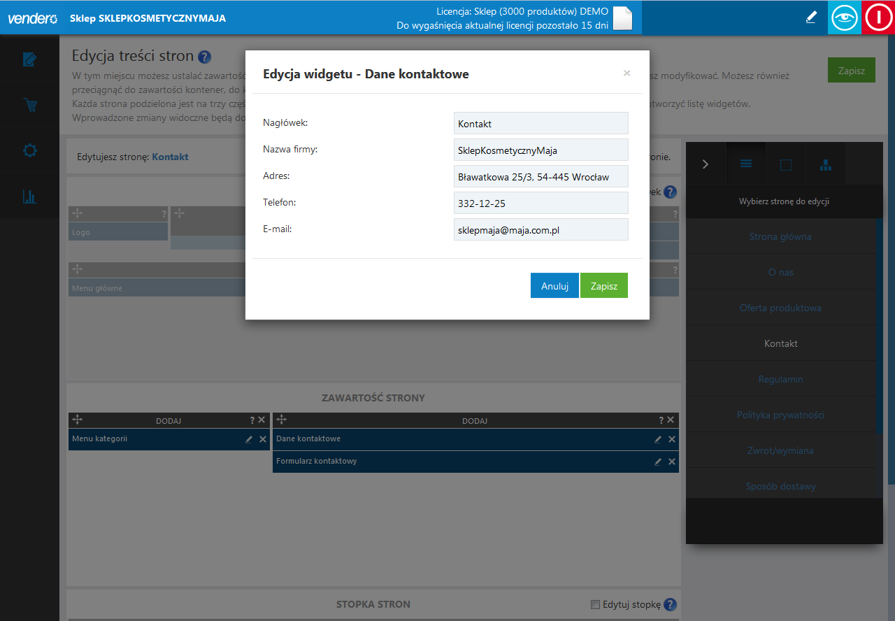 vendero ( licencja na 1 rok wersja elektroniczna - dla posiadaczy abonamentu na aktualizację Subiekta gt / nexo) to prosty i wygodny sposób na zaistnienie z biznesem w Internecie. Aplikacja umożliwia posiadaczom systemu InsERT GT lub InsERT nexo założenie sklepu internetowego, witryny z ofertą lub firmowego serwisu - szybko i łatwo, bez specjalistycznej wiedzy na temat tworzenia stron WWW. Intuicyjny kreator poprowadzi użytkownika krok po kroku do gotowej witryny w ciągu zaledwie kilku minut. Wystarczy wybrać jeden z wielu szablonów graficznych, liczbę podstron i elementy, które mają się na nich znaleźć. Stworzonym w ten sposób serwisem można zarządzać z dowolnego miejsca z dostępem do Internetu.